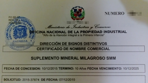 登録証:現在住んでいる国において、MMS販売事業者登録をし、許可を得ています